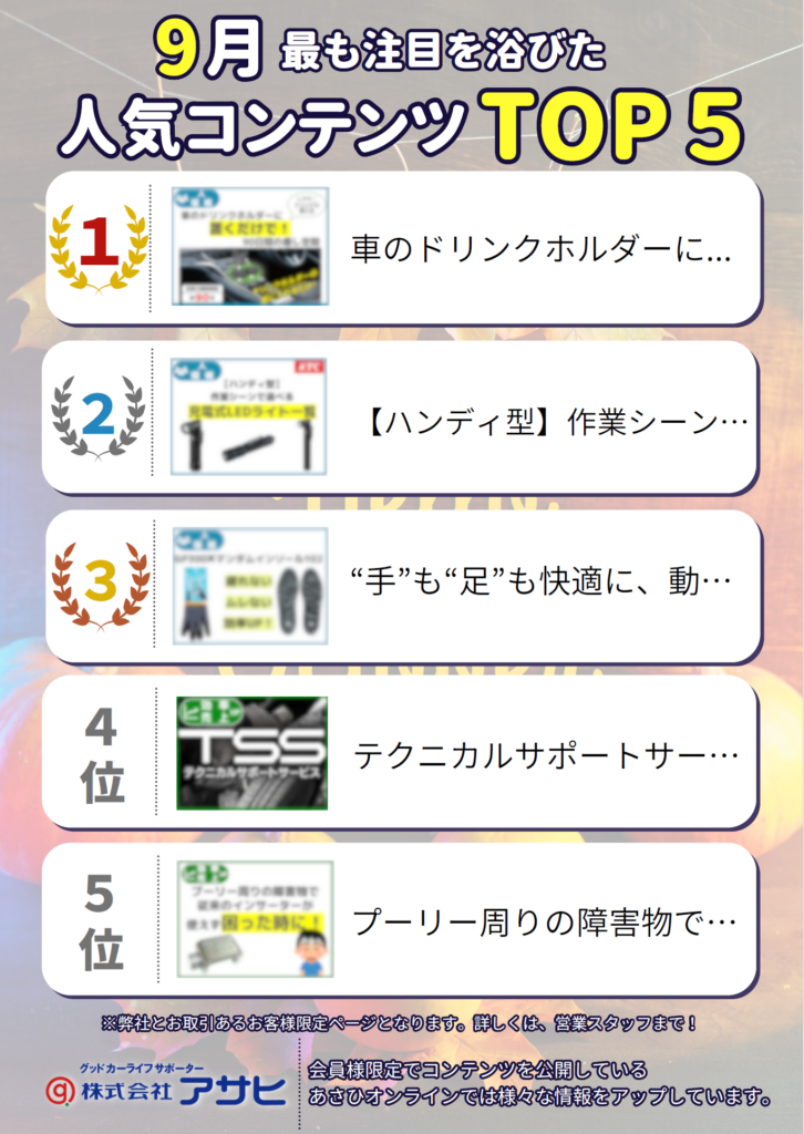 新着情報 月間のコンテンツTOP5!【9月号】 お知らせ 2025年10月3日 月間のコンテンツTOP5!【9月号】 お気に入りに追加 お気に入り あさひオンライン会員様限定コンテンツ9月のTOP5‼ ㅤㅤㅤㅤㅤㅤㅤㅤ会員様限定で配信しているコンテンツ、TOP5を人気順にピックアップ!内容は下記PDFからご覧になれます!(会員様限定)ㅤㅤㅤㅤㅤㅤㅤㅤㅤㅤㅤㅤㅤㅤㅤㅤㅤㅤㅤㅤㅤㅤご興味のある方はぜひコンテンツをご覧ください。 Tweet 記事を印刷する 前の画面に戻る トップページへ戻る